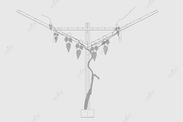 オープン切妻トレリスシステムは、当初テーブルグレープ品種の広大な樹冠用に設計されており、またDOV(Dried On the Vine)レーズン生産用に変更することもできます。